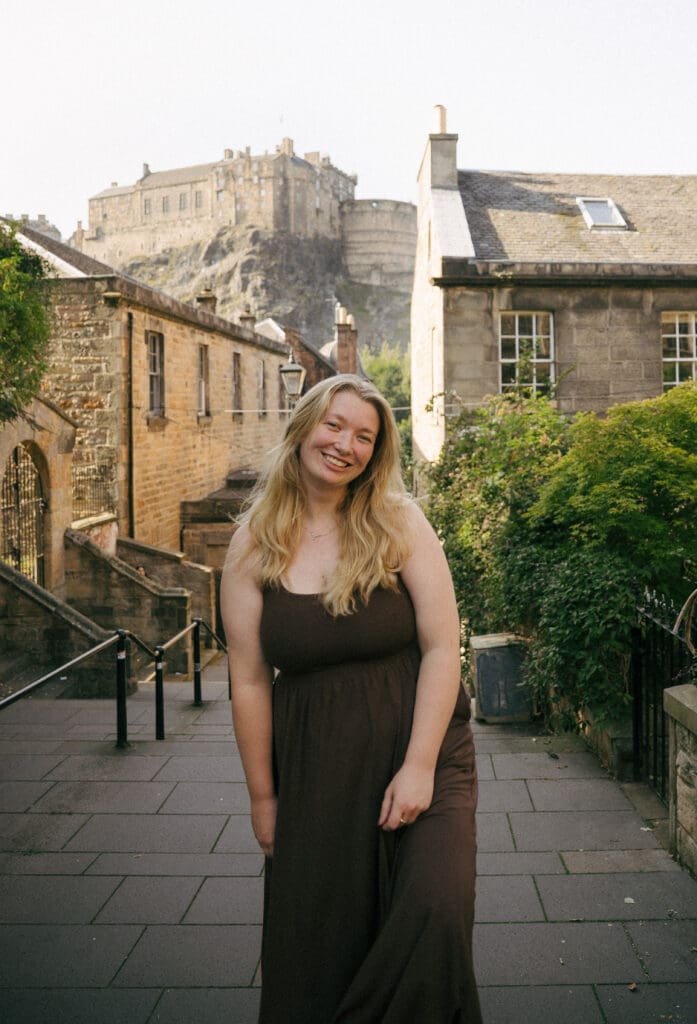 Layers are your best friend. Edinburgh weather loves to keep things interesting, so stylish jackets, scarves, and boots are both practical and photo-friendly. It definitely doesn’t hurt to bring an umbrella since rain is common here!