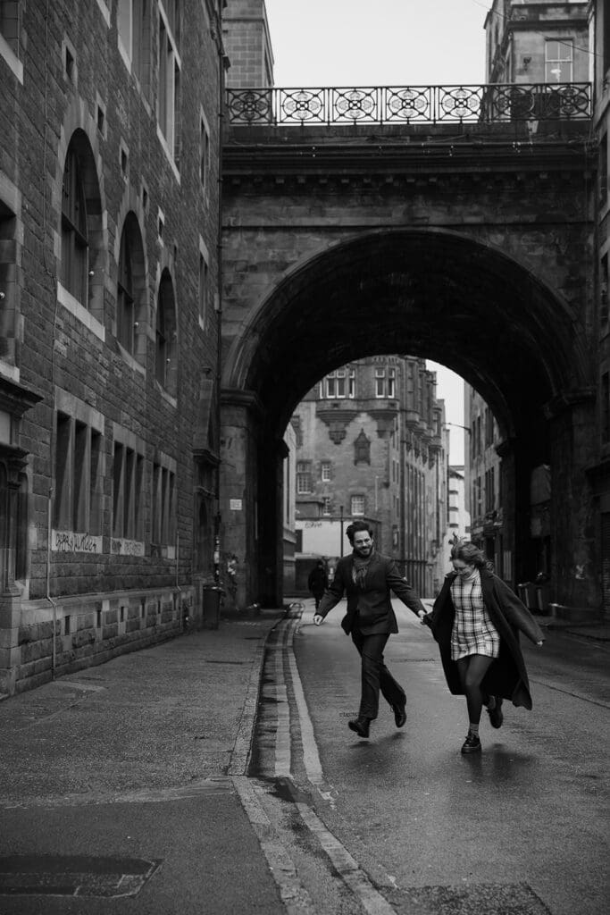 One of the best parts of photographing couples in Edinburgh? The variety. Within a short walk, you can go from medieval alleyways to sweeping green spaces to jaw-dropping views.